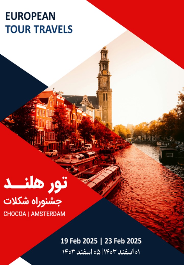 تورجشنواره شکلات هلند از یکم تا پنجم اسفندماه با اخذ ویزای شنگن ، هتل 4 و 5 ستاره با صبحانه ، بیمه مسافرتی ، لیدرفارسی زبان و بازدید از جاذبه های توریستی برگزار می شود.